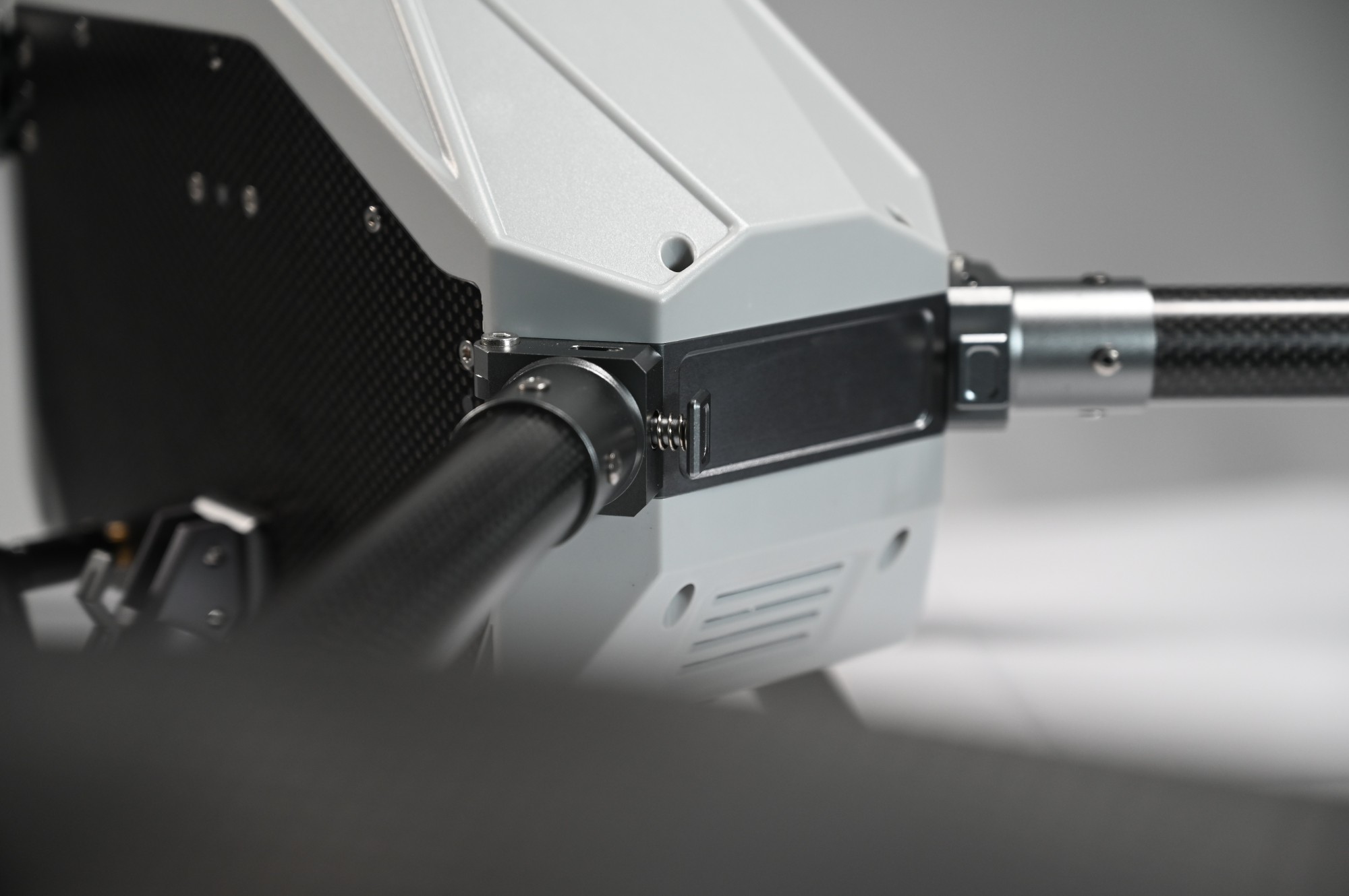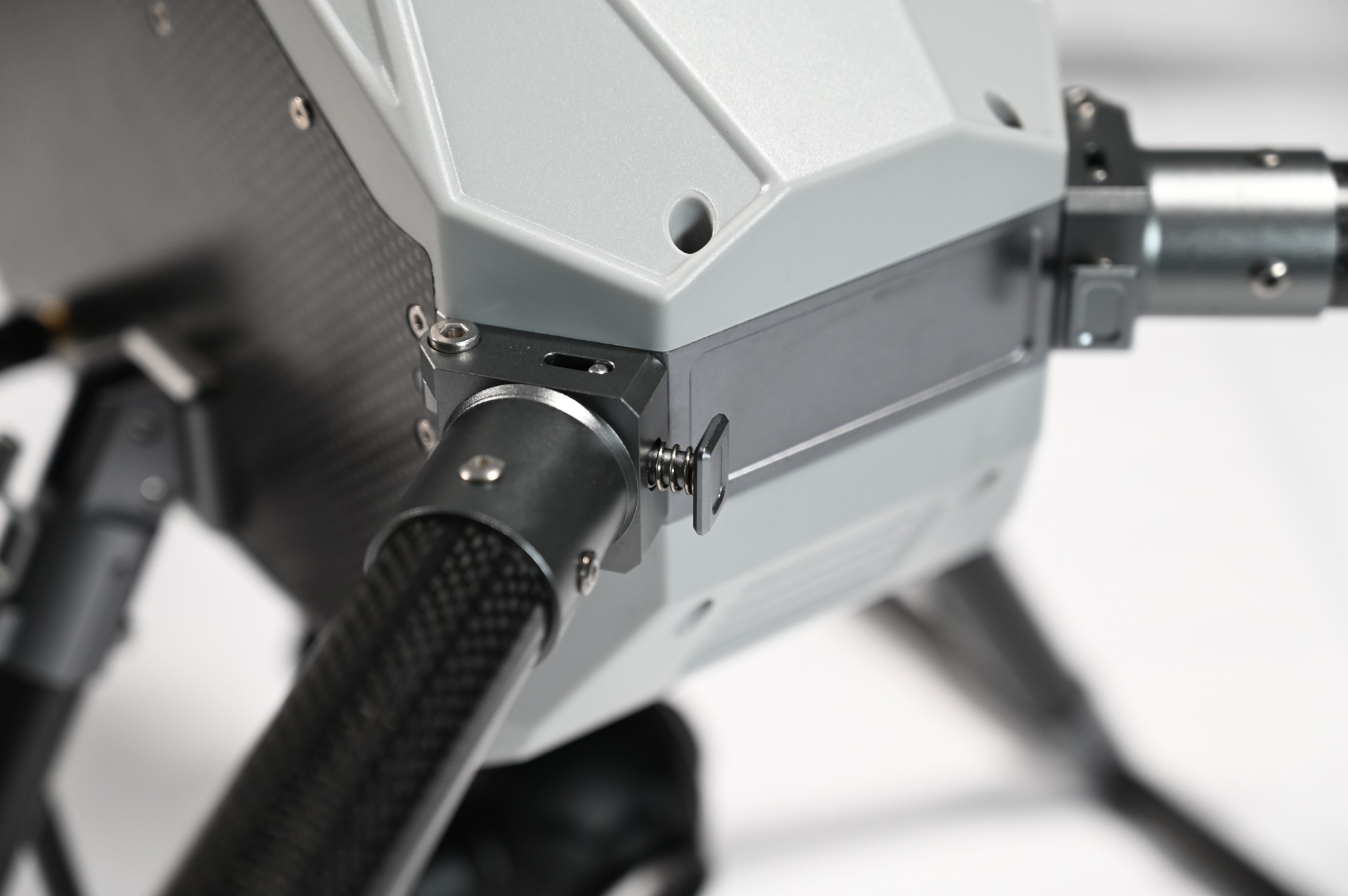 快速拆卸落地架:60°倾斜,着陆更稳定,更多的装载空间;2秒快速拆卸/安装,不再出现错误位置;独特的盲孔插销锁定结构,具有专利设计。